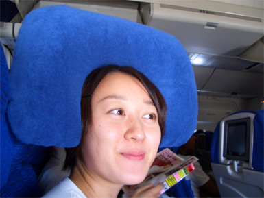 9月2日、「午前6時になっても起きましたメールがなかったら起こして!」というゆうみにモーニングコールをするも応答がなく、インターホンでおはよう! 7時01分湘南台発の電車で行く予定だったので、6時40分頃タクシーに来てもらえればいいかな~と思い6時20分頃タクシーに電話をすると、かなり混んでいるのであと10分で出て欲しいとのこと。大慌てで支度して出発!さらば遠藤! 10分とせずに湘南台駅に到着! が、ここで大変なことに気付く。携帯忘れた。 私の携帯はFOMAなのでそのまま海外で使えるのですが、ばっちり家に置いてきてしまいました。取りに戻る訳にもいかず、身悶えながら市営地下鉄へ…さらば湘南台… 戸塚乗換えで成田へ向かいます。けんじ曰く成田Express代をケチる人用路線です。湘南台から成田までおよそ2時間40分。さすがに腰が痛くなったよ。 茶色が私ので青がゆうみの。成田が近くなると車内は大きい荷物の人だらけでした。 10時前に成田に到着。飛行機の出発は13時10分なので、大きい荷物を預けたあとはちょっとお店を見たりご飯を食べたりと割とゆっくり過ごせました。 ここで無事海外対応携帯をGETすることが出来ました!FOMAカード再発行+機種を購入で番号そのまま海外で使えるとのこと。ノキアレンタルとかだと結構高いのでよかた! 手荷物チェックを受けて、わくわくしながら搭乗です。 エア枕(首に装着して寝るやつ)を頭にはめてみる。 まだ離陸していないのにはしゃぎすぎです。 そして、とうとう離陸。Gが!Gが!!とか言いながらはしゃぐ。さらば日本! まったく緊張感のない二人ですが、何とか日本を発つことは出来ました。 いってきます! |